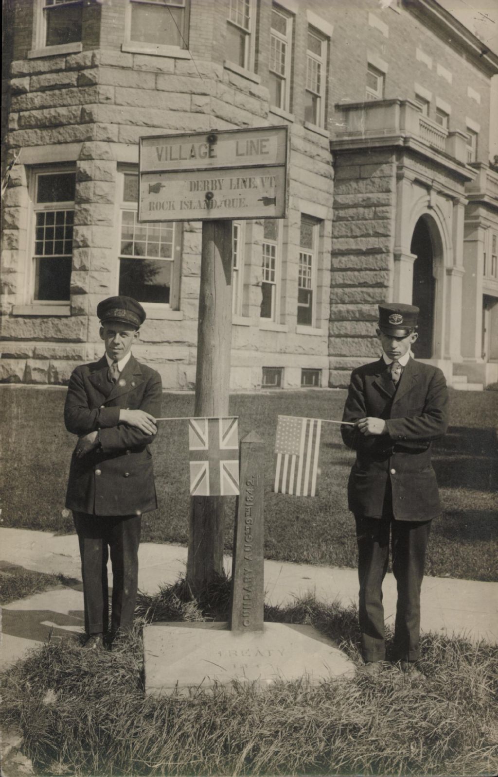 (Village Line: Derby Line Vt., Rock Island, Que.) Frontière entre les villages de Derby Line, Vt. et Rock Island, Qué.)