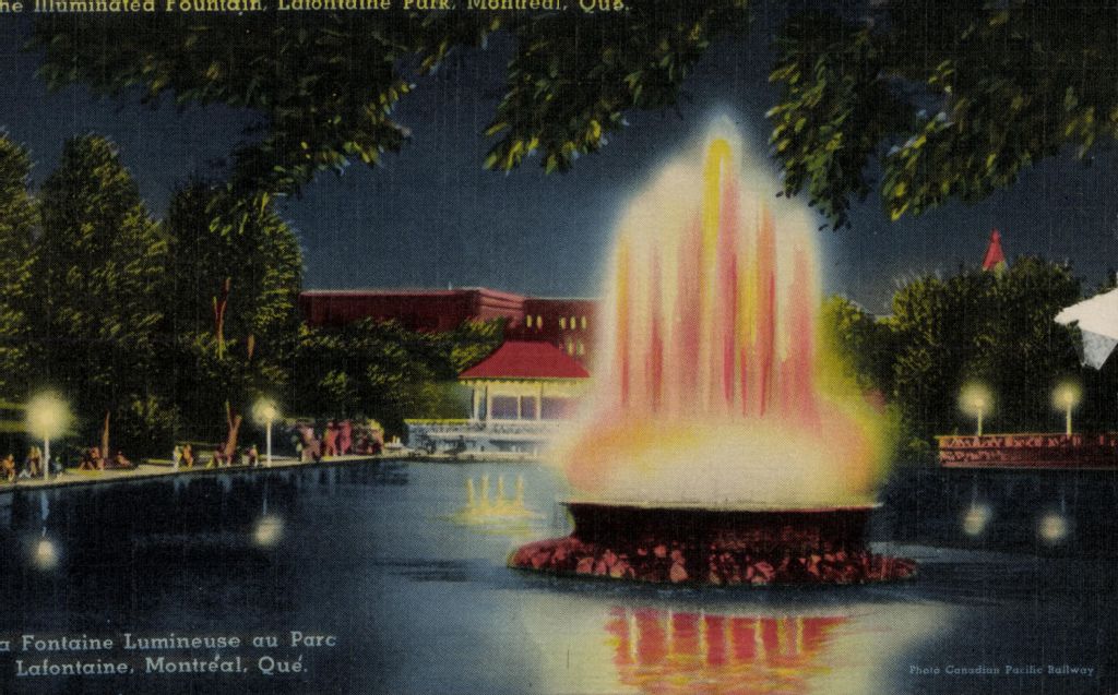 The illuminated fountain, Lafontaine Park, Montreal, Que. La fontaine lumineuse au parc Lafontaine, Montréal, Qué.