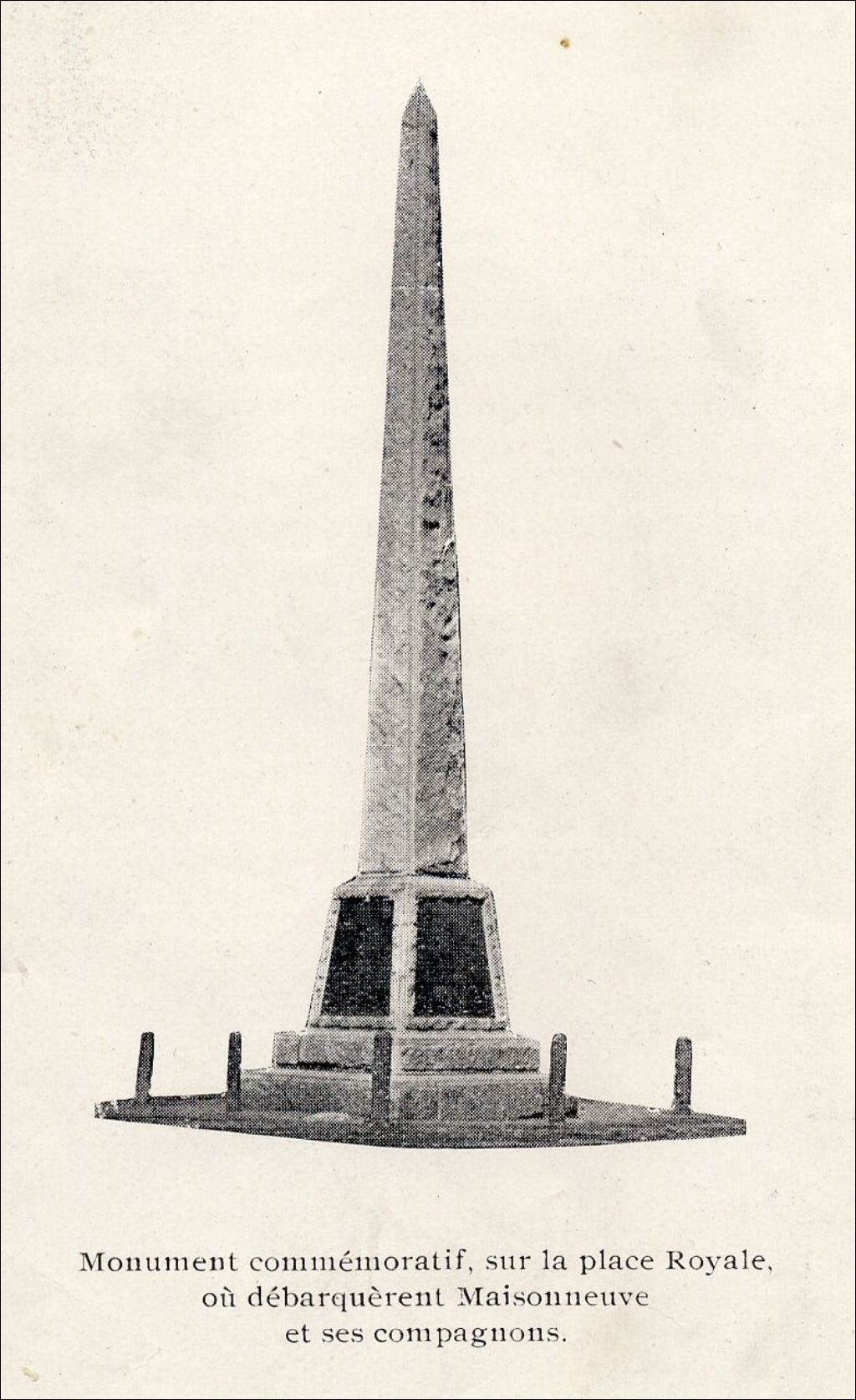 Monument commémoratif, sur la place Royale, où débarquèrent Maisonneuve et ses compagnons