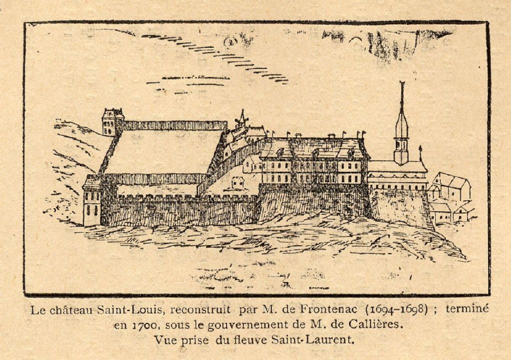 Le Château Saint-Louis, reconstruit par M. de Frontenac (1694- 1698); terminé en 1700, sous le gouvernement de M. de Callières. Vue prise du fleuve Saint-Laurent
