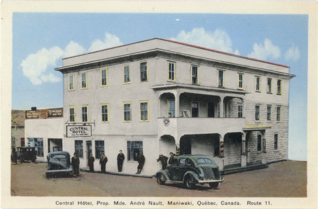 Central Hôtel, Prop. Mde. André Nault, Maniwaki, Québec, Canada. Route 11
