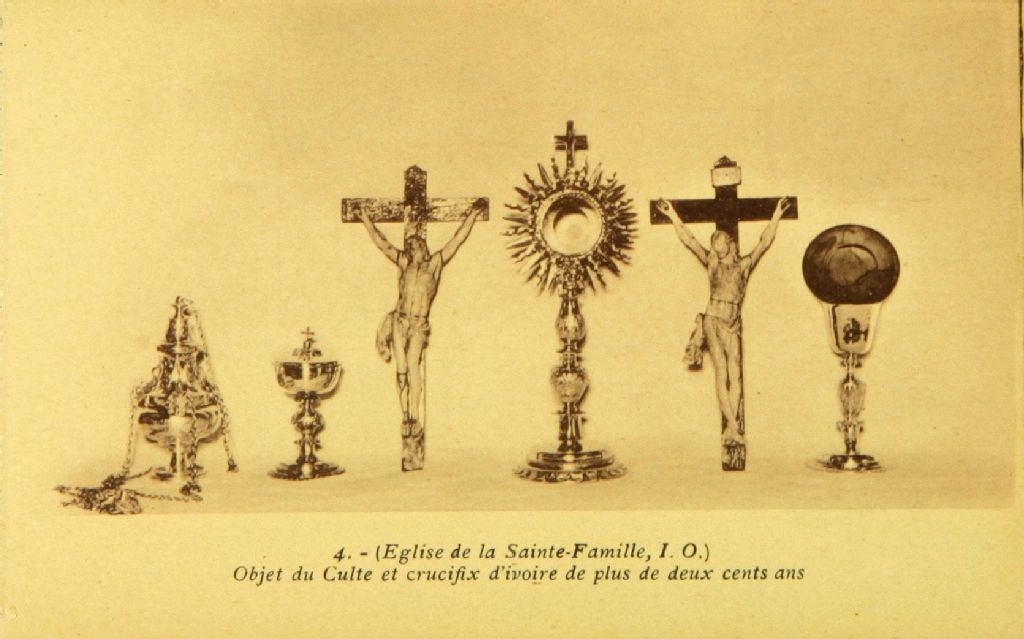 (Église de la Sainte-Famille, I. O.), Objet du Culte et crucifix d'ivoire de plus de deux cents ans