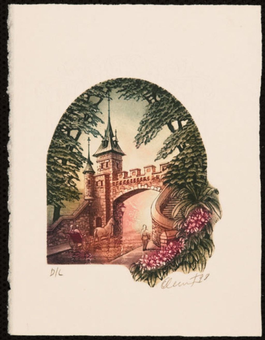 1 estampe : eau-forte, aquatinte, gaufrure, coul. ; cuvette 14 x 11 cm (irrég.), sur feuille 19 x 15 cm