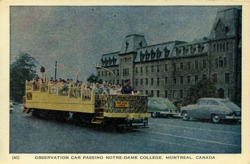 Observation car passing Notre-Dame College, Montreal, Canada