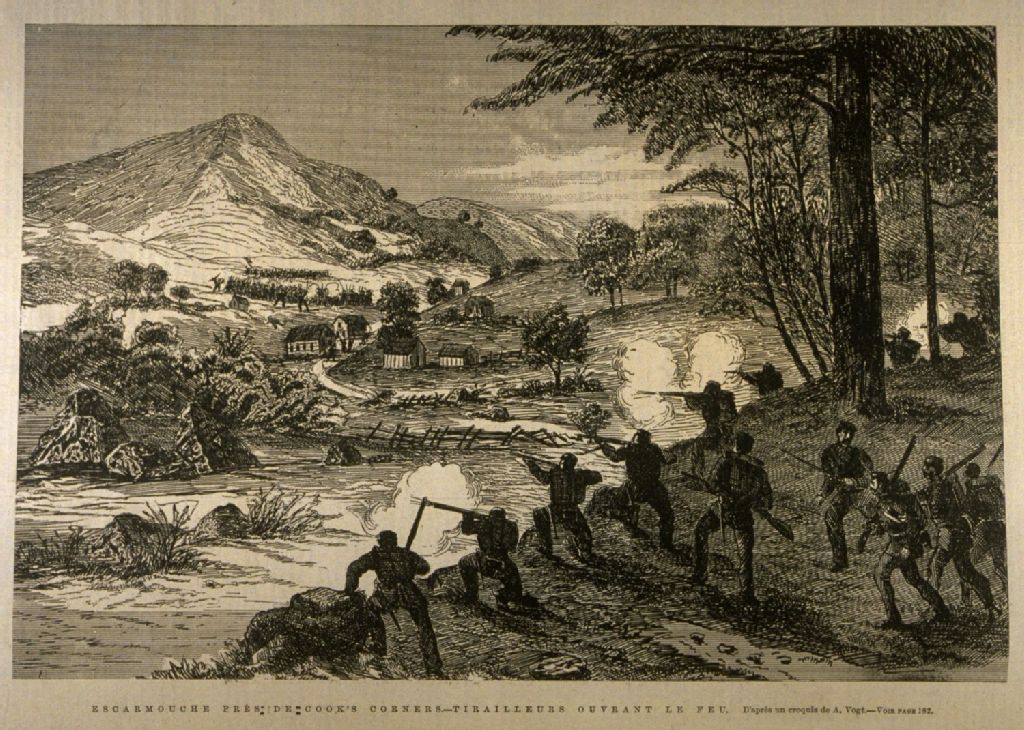 Escarmouche près de Cook's Corner tirailleurs ouvrants le feu