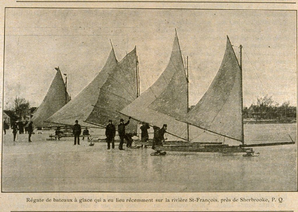 Régate de bateaux à glace qui a eu lieu récemment sur la rivière St- François, près de Sherbrooke, P.Q.