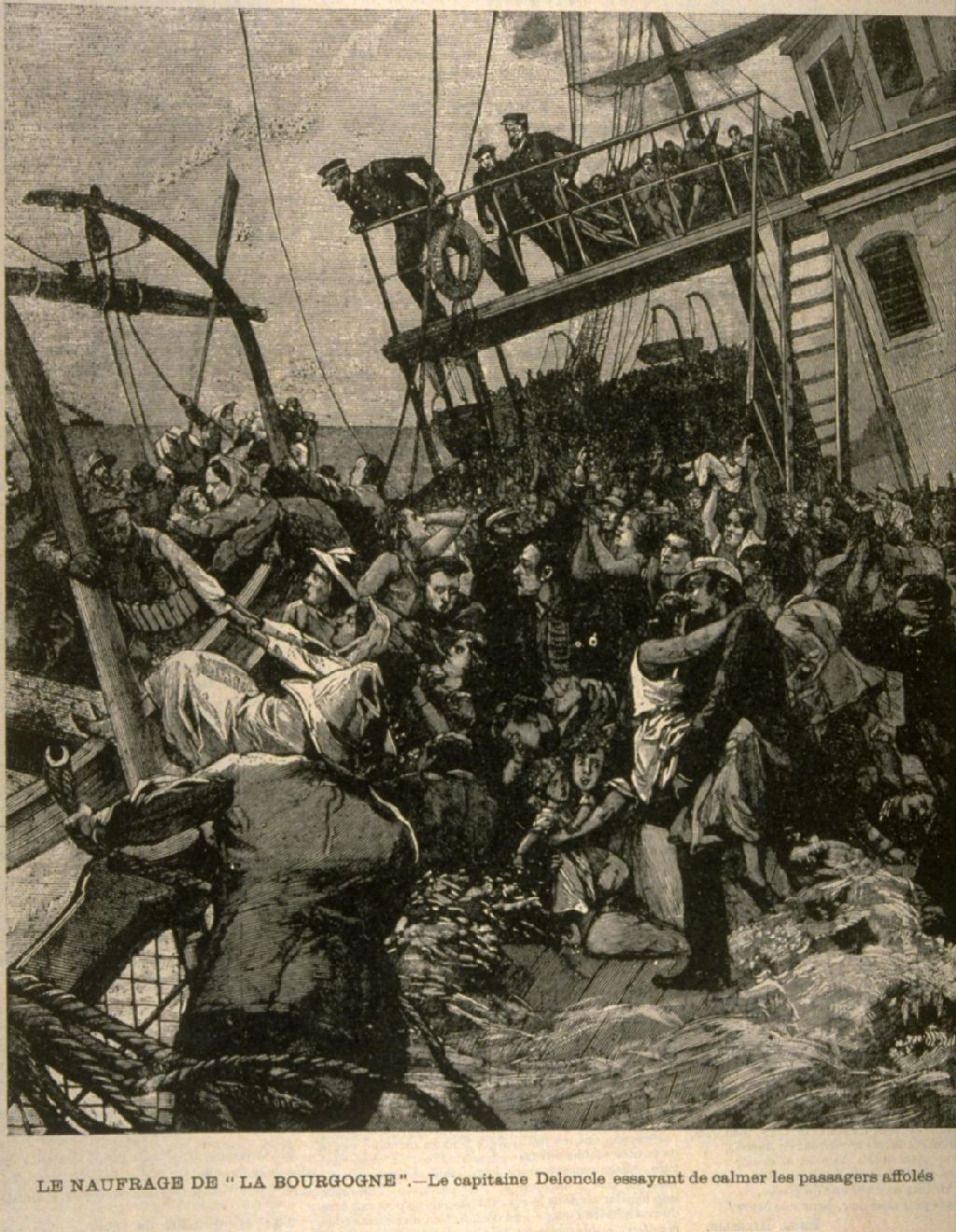 Le naufrage de "La Bourgogne" Le capitaine Deloncle essayant de calmer les passagers affolés