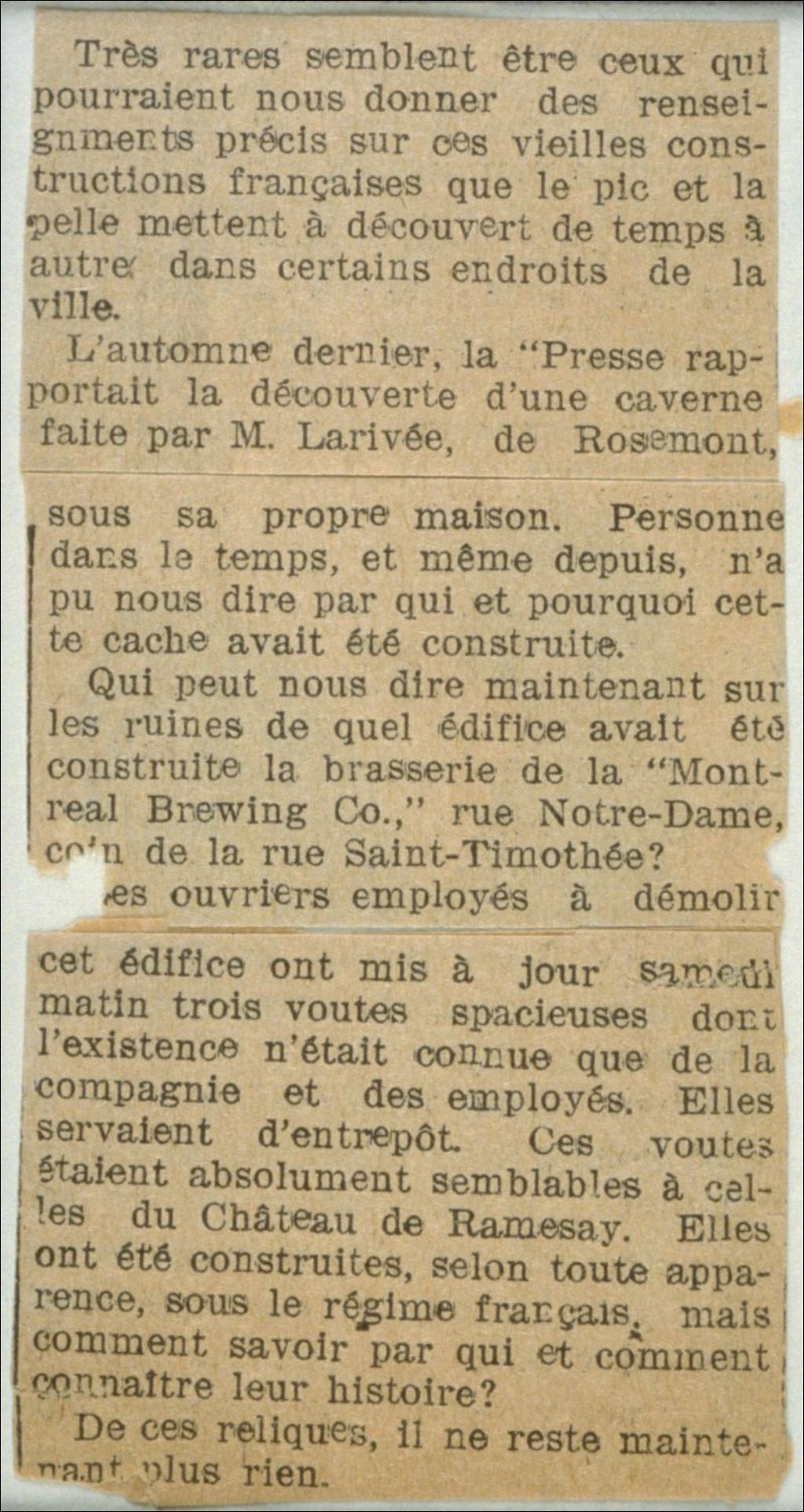 Montreal Brewing Co. - voûtes sous l'édifice - coin Notre-Dame/St- Timothée