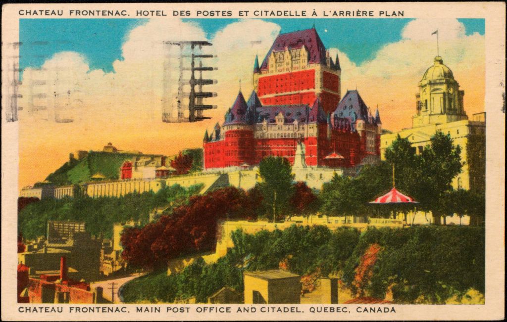 Château Frontenac, Hôtel des postes et Citadelle à l'arrière plan, Québec, Canada = Chateau Frontenac, Main Post Office and Citadel, Quebec, Canada