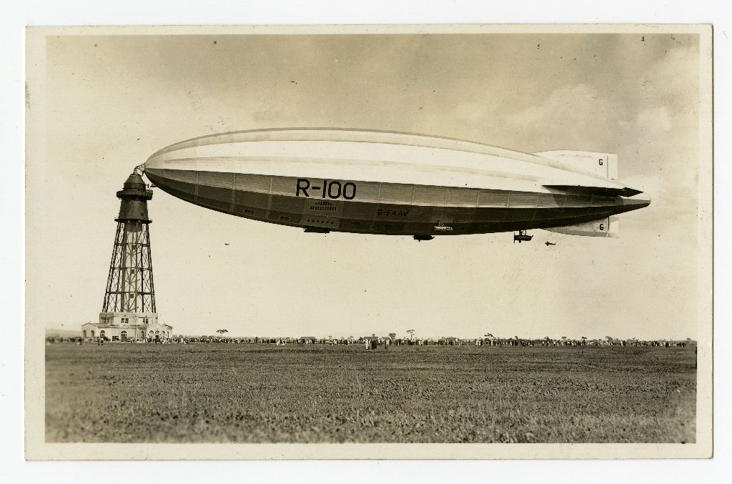 [Le dirigeable R100, à son mât d'amarrage, Saint-Hubert, Québec, Canada construit par le gouvernement canadien, en coopération avec le gouvernement britannique]