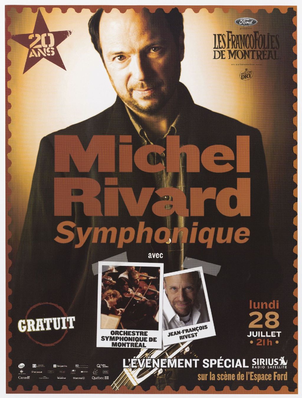 Michel Rivard symphonique avec Orchestre symphonique de Montréal [et] Jean-François Rivest l'Évenement spécial Sirius radio satellite ... Francofolies de Montréal ...