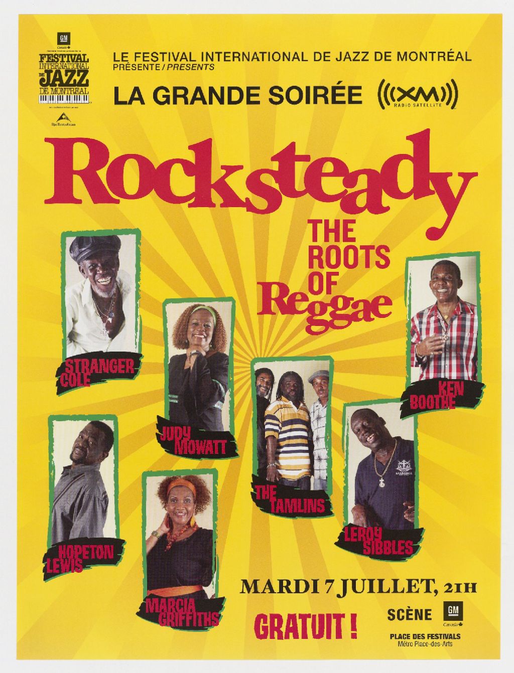 Le Festival international de jazz de Montréal présente La Grande Soirée XM Rocksteady, The roots of reggae ... Stranger Cole, Judy Mowatt, The Tamlins ... Le Festival international de jazz de Montréal presents La Grande Soirée XM Rocksteady, The roots of reggae ... Stranger Cole, Judy Mowatt, The Tamlins ...