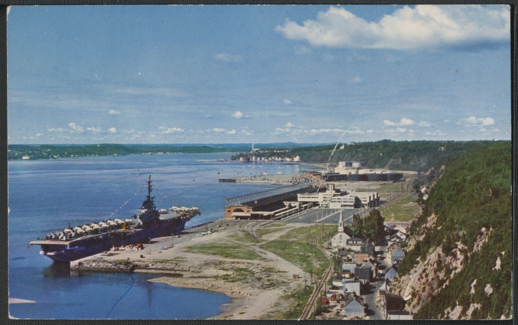 Paroisse Notre-Dame-de-la-Garde, gare maritime Champlain, le port, Québec, Canada = Notre-Dame-de-la-Garde parish, Champlain maritime station, Québec harbour and U.S. Marine visitors, Québec, Canada /