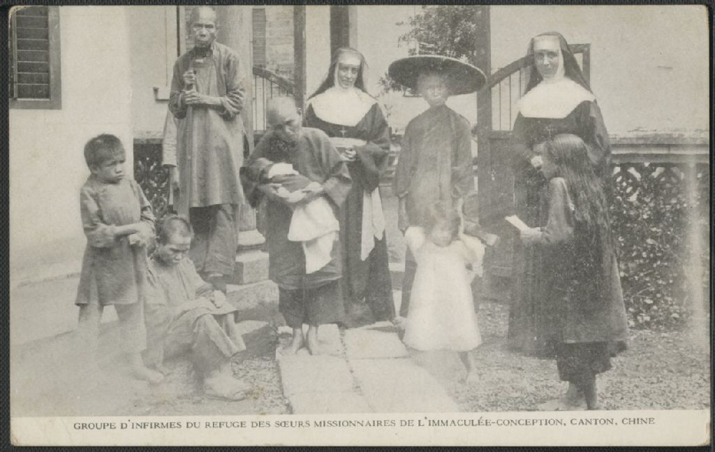 Groupe d'infirmes du refuge des Soeurs Missionnaires de l'Immaculée-Conception, Canton, Chine