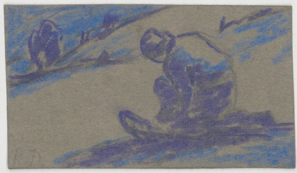 1 dessin : crayon à la mine de plomb et crayon de couleur ; feuille