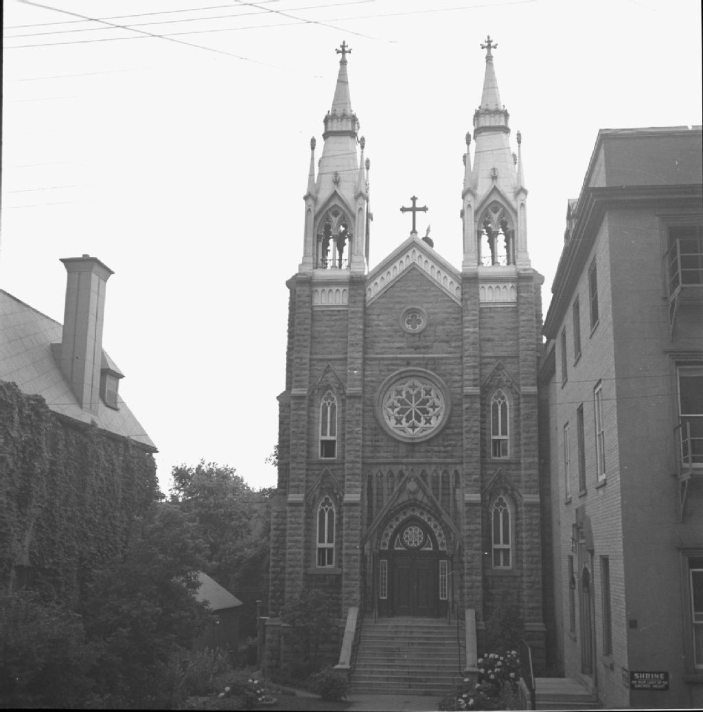 Façade de la chapelle des Missionnaires Notre-Dame-du-Sacré-Coeur, 1950, Archives nationales à Québec, Fonds Lida Moser, (03Q,P728,S1,D1,P1-36), Lida Moser.