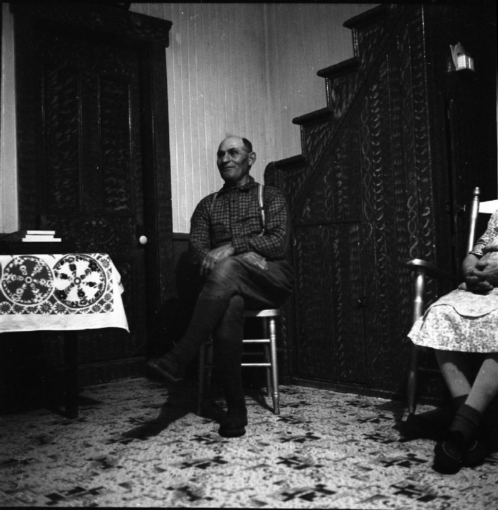 Le chanteur folklorique John Collin, Pointe-à-la-Frégate, 1950, Archives nationales à Québec, Fonds Lida Moser, (03Q,P728,S1,D1,P15-48), Lida Moser.
