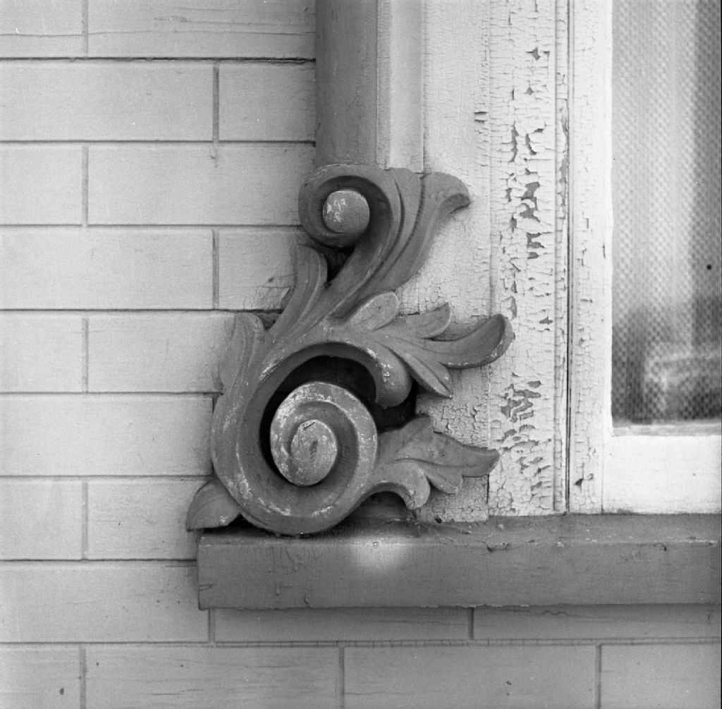 Détail d'une fenêtre de l'Hôtel Bellevue (Manoir Saint-André), Saint-André, 1950, Archives nationales à Québec, Fonds Lida Moser, (03Q,P728,S1,D1,P17-78), Lida Moser.