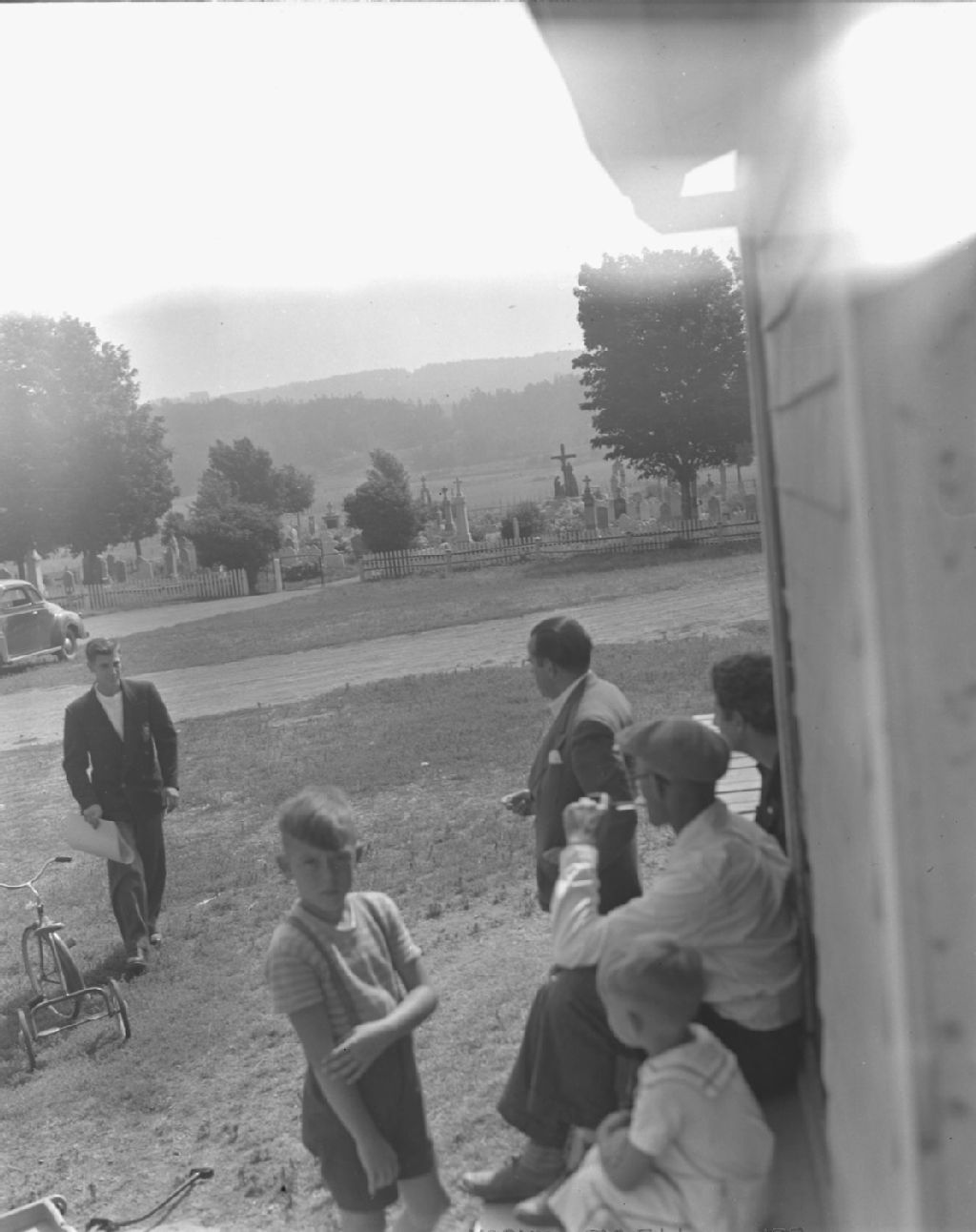 Paul Gouin avec un groupe de personnes à Saint-André, 1950, Archives nationales à Québec, Fonds Lida Moser, (03Q,P728,S1,D1,P17-82), Lida Moser.