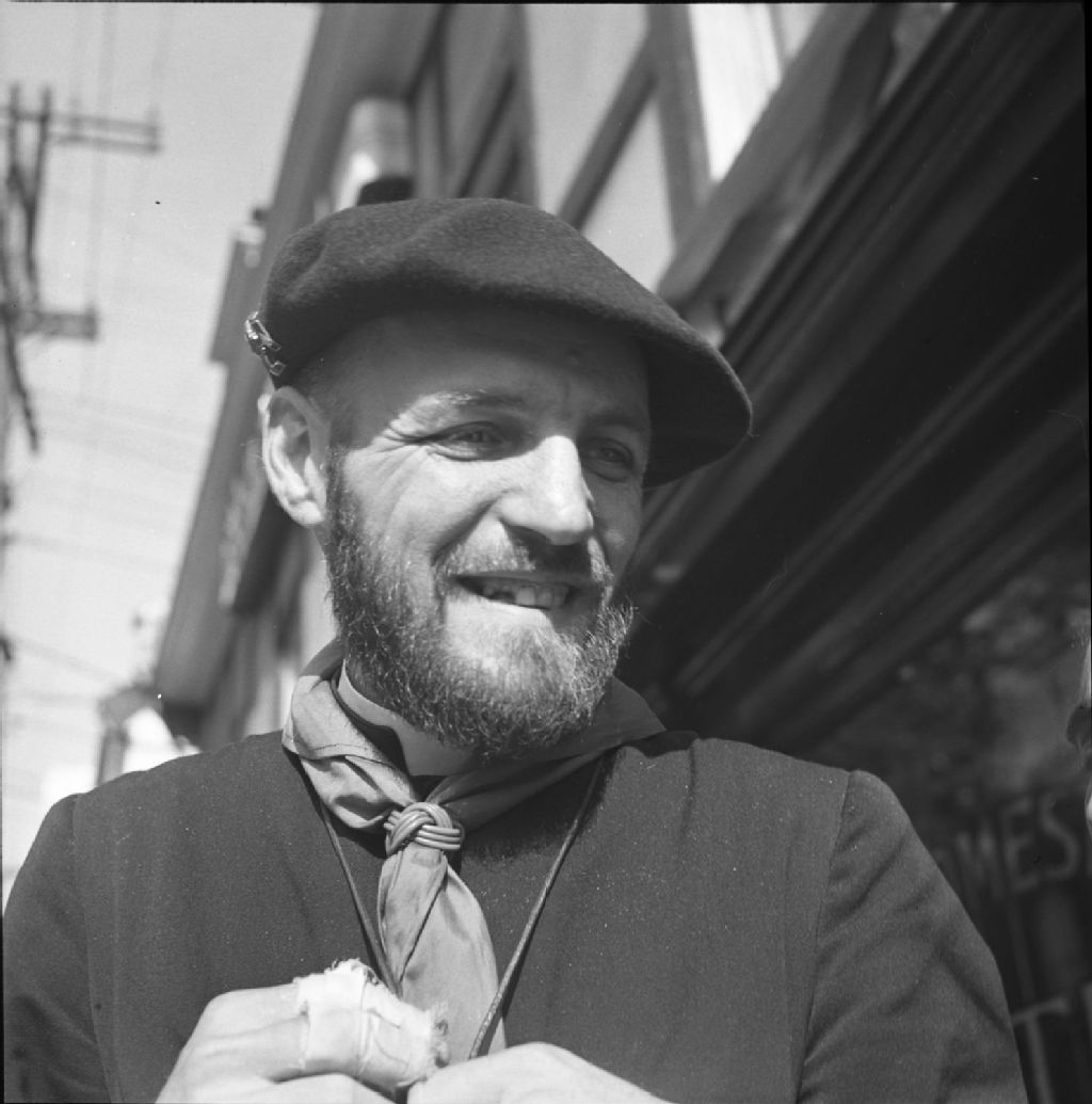 Le Père Ambroise Lafortune au terminus de la rue Sainte-Anne, Vieux-Québec, 1950, Archives nationales à Québec, Fonds Lida Moser, (03Q,P728,S1,D1,P19-6), Lida Moser.