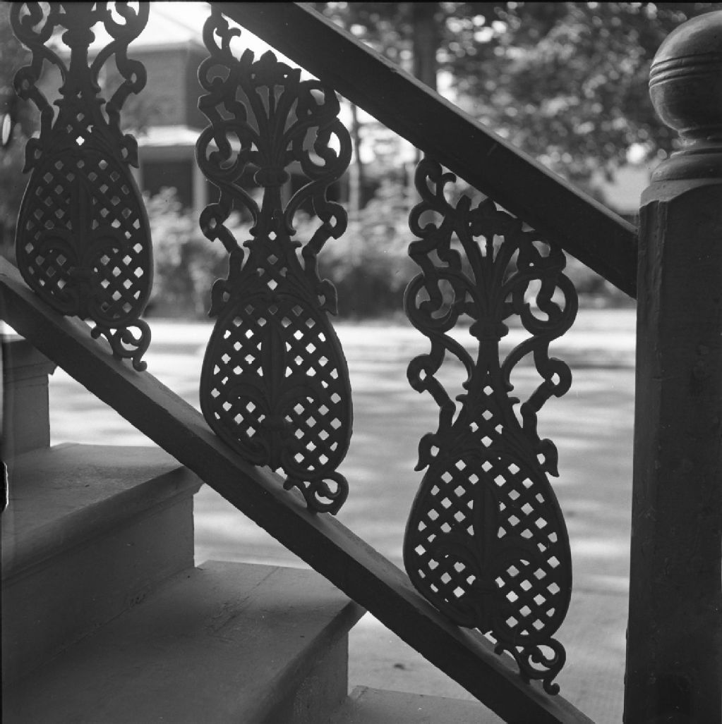Détail d'une rampe d'escalier d'une résidence, L'Islet, 1950, Archives nationales à Québec, Fonds Lida Moser, (03Q,P728,S1,D1,P20-52), Lida Moser.