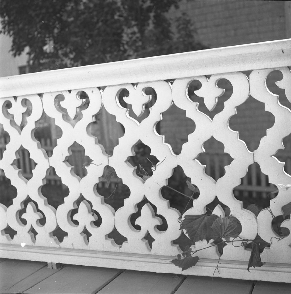 Détail d'une rampe de galerie d'une résidence, Beaumont, 1950, Archives nationales à Québec, Fonds Lida Moser, (03Q,P728,S1,D1,P20-80), Lida Moser.