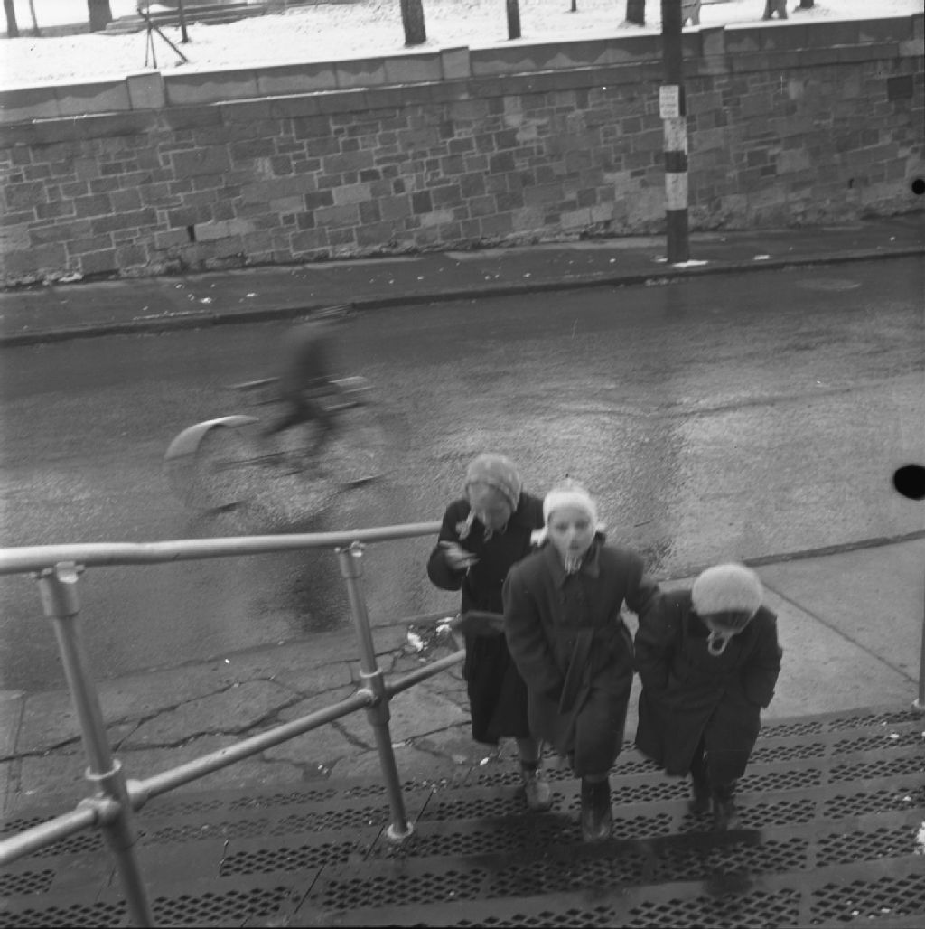 Vue sur l'escalier Charles-Bailairgé, 1950, Archives nationales à Québec, Fonds Lida Moser, (03Q,P728,S1,D1,PWQ-194), Lida Moser.