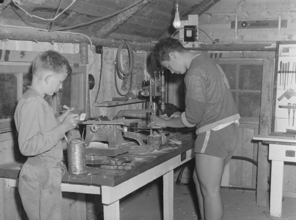Camp. Powter's Camp : Craft Shop, 20 août 1944, Archives nationales à Montréal, Fonds Conrad Poirier, (06M,P48,S1,P10099), Poirier, Conrad.