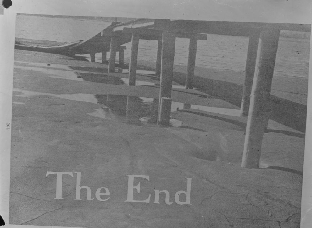 Nous voyons une passerelle sur pilotis avec l'inscription «The End»