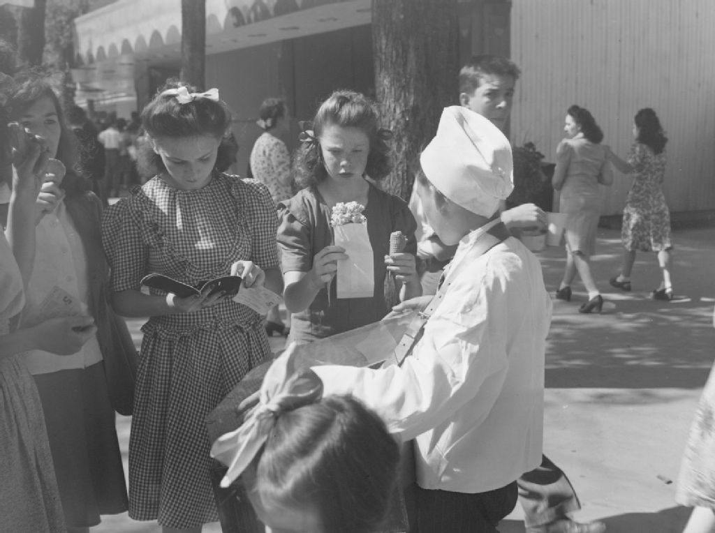 Des jeunes filles achètent du maïs soufflé et des cornets de crème glacée au parc Belmont de Cartierville