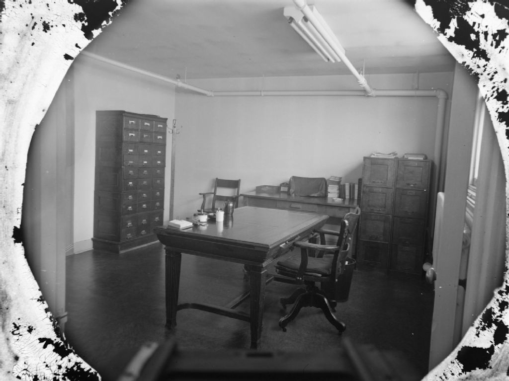 Nous voyons le bureau de monsieur Gérald Danis employé de Poirier Bessette & Cie Ltée, propriétaires du journal Le Samedi situé rue de Bullion à Montréal