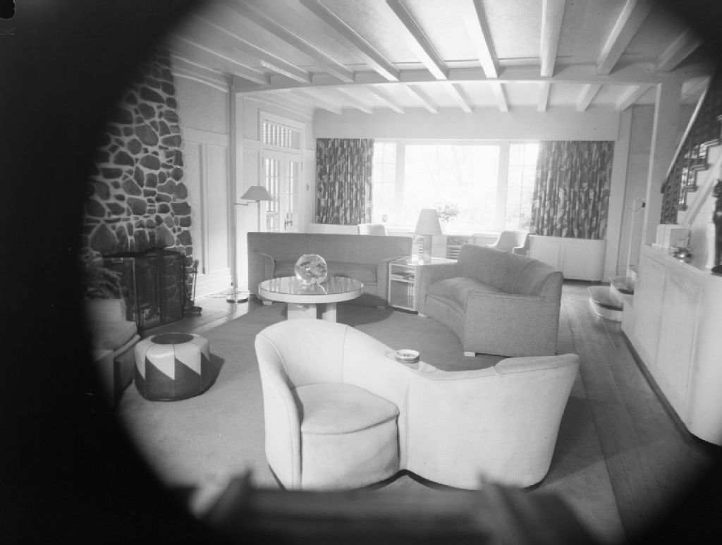 Nous voyons le salon avec foyer de pierres de la résidence de monsieur P. Charton de LaSalle