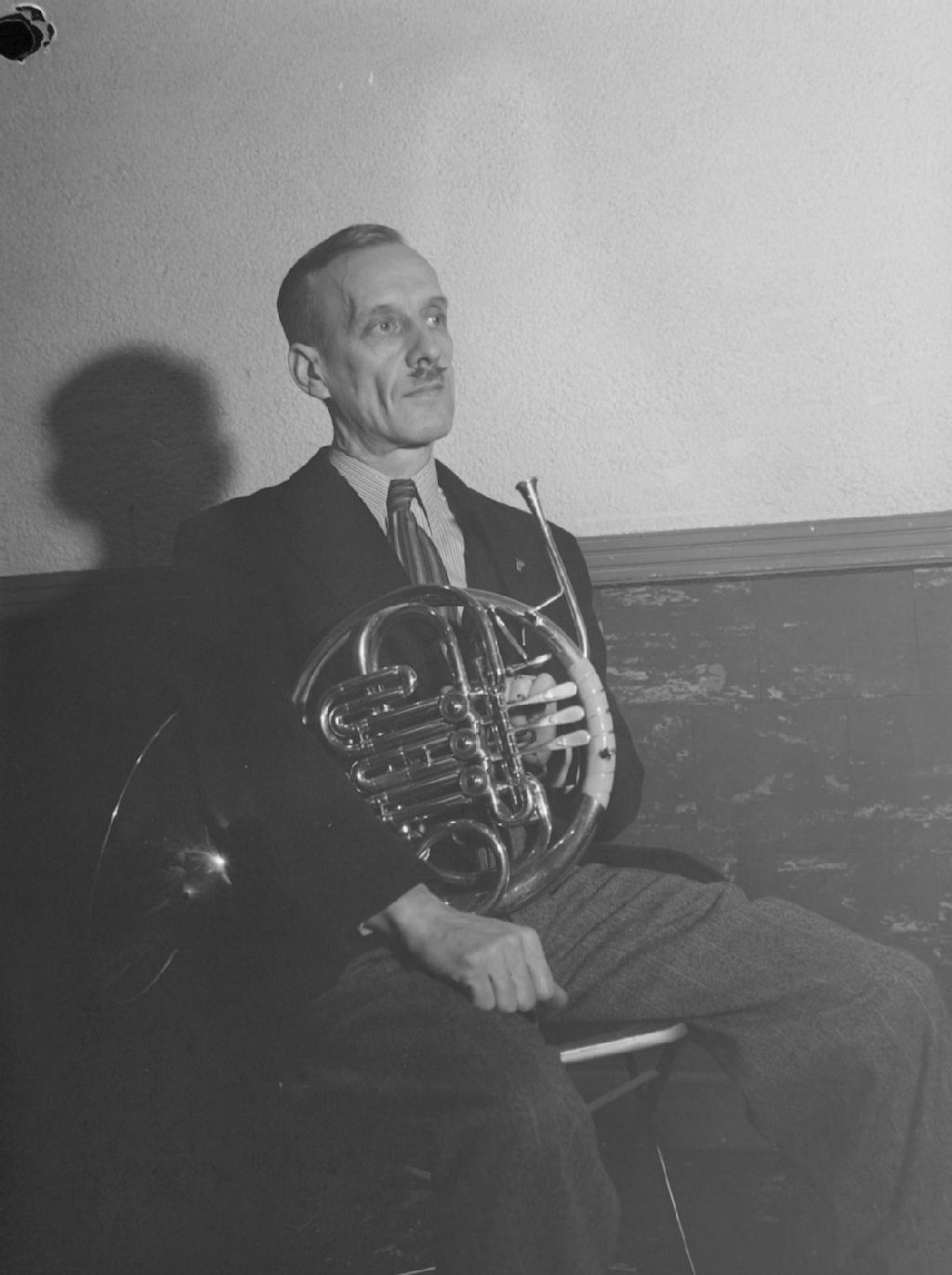 Guillaume tient son cor d'harmonie