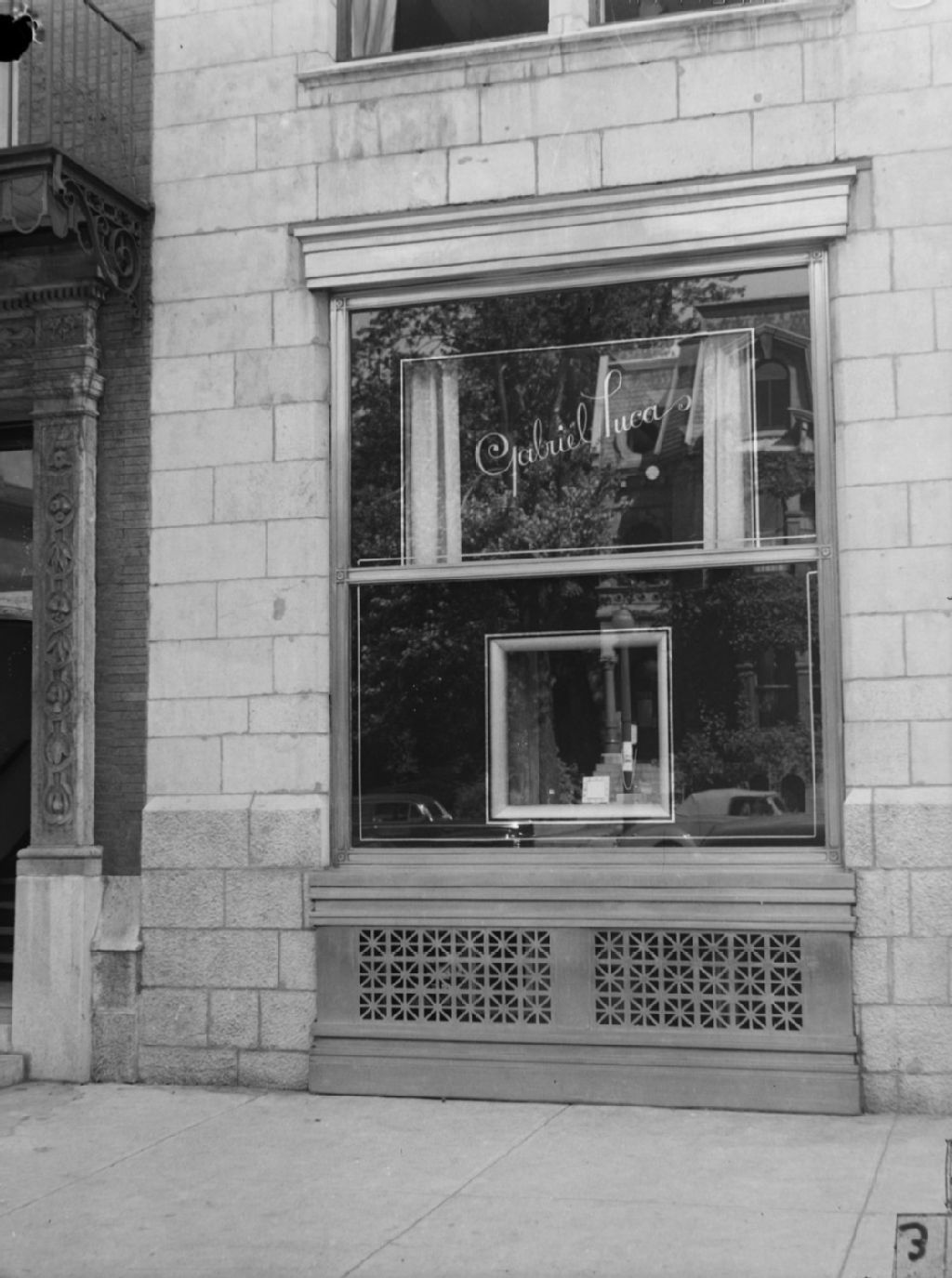 Nous voyons la vitrine de l'atelier du joaillier Gabriel L. Lucas situé rue Sherbrooke Ouest à Montréal