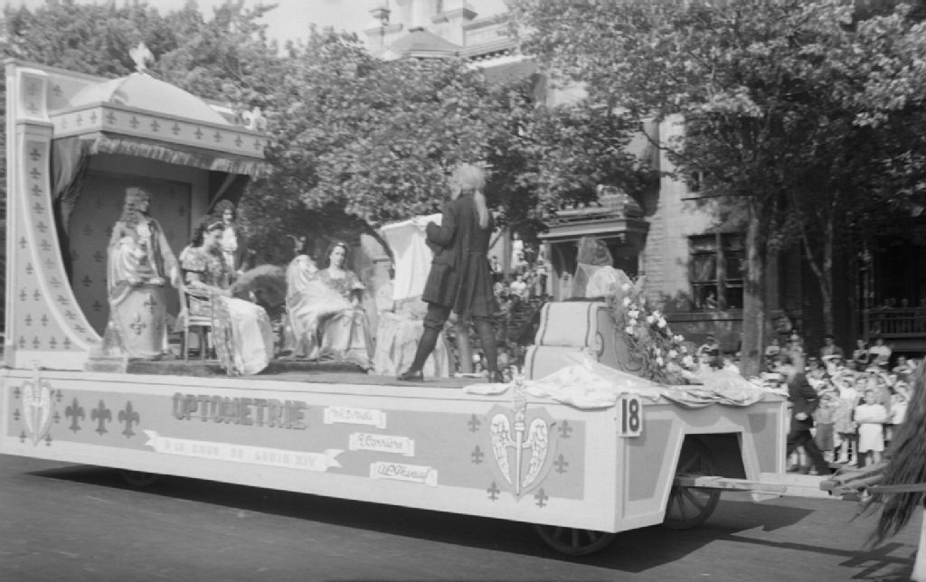 Un char allégorique, dont le thème est l'«Optométrie à la cour de Louis XIV», fait partie du défilé de la Saint-Jean-Baptiste à Montréal