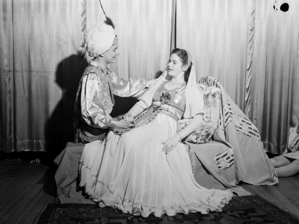 Nous voyons deux comédiens lors d'une scène d'une représentation théâtrale pour les enfants. La jeune femme porte un sari et le jeune homme est coiffé d'un turban