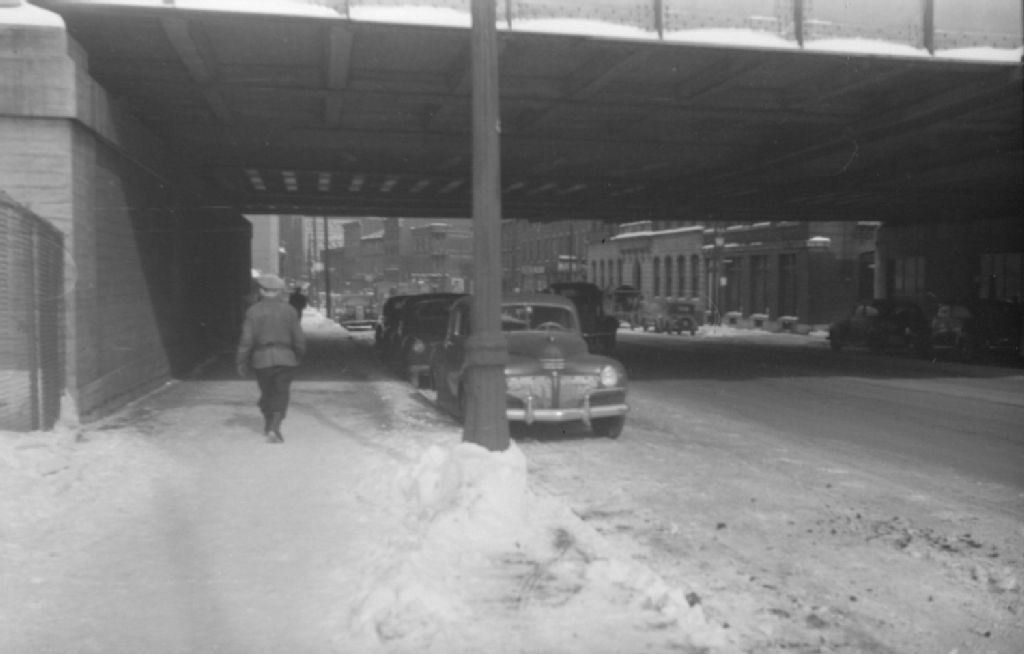 View. St. Antoine St. near Central Station, 10 mars 1946, Archives nationales à Montréal, Fonds Conrad Poirier, (06M,P48,S1,P14455), Poirier, Conrad.