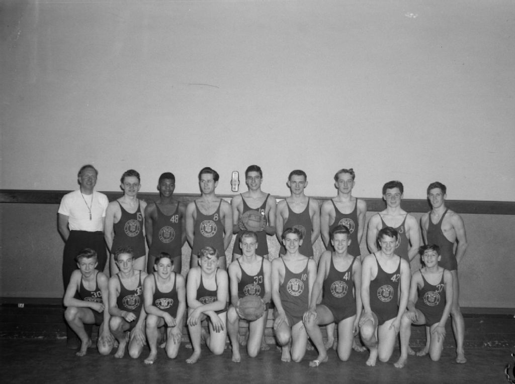 Étudiants faisant partie de l'équipe de volley-ball au High School of Montreal, rue University à Montréal