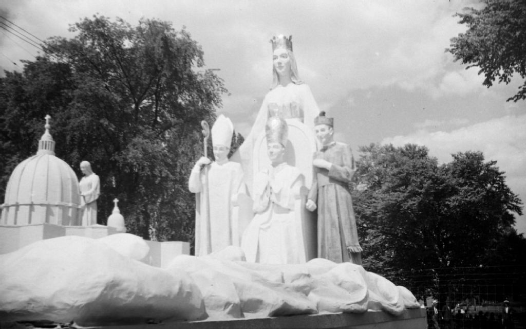 Personnages installés sur un char allégorique lors d'une parade organisée pour le Congrès Marial d'Ottawa