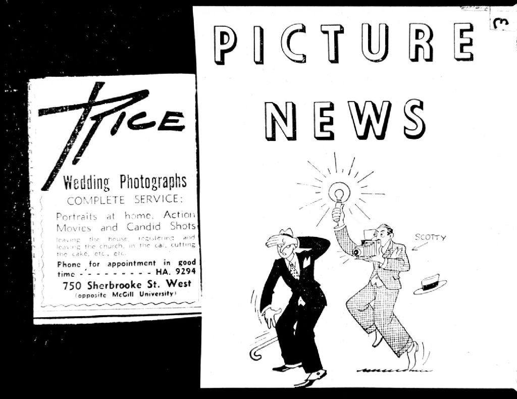 Caricature sur la photographie et annonce publicitaire du photographe Rice Studio situé sur la rue Sherbrooke à Montréal