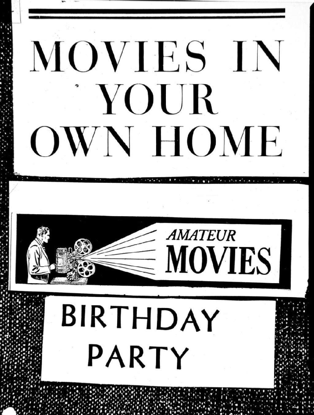 Montage de différents sigles tels que : «Movies in your Own Home», «Amateur movies» et «Birthday Party»