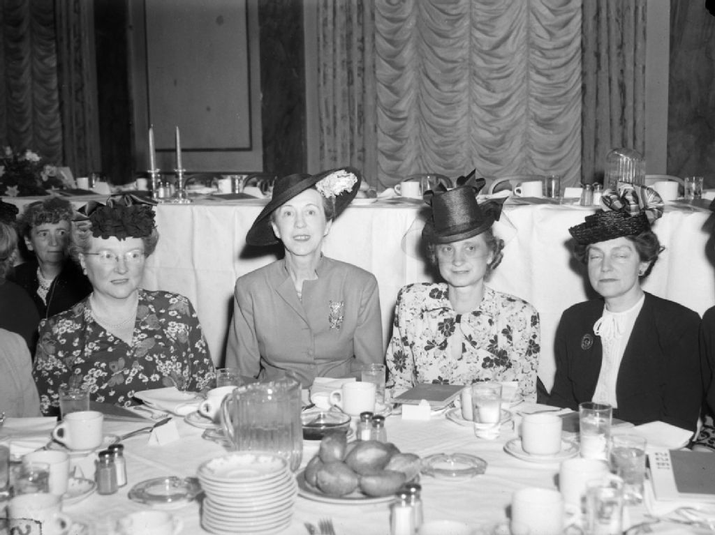 Banquet regroupant les membres du Notre Dame de Grace Women's Club de Montréal. L'événement a été organisé à l'occasion du 25e anniversaire de l'organisme