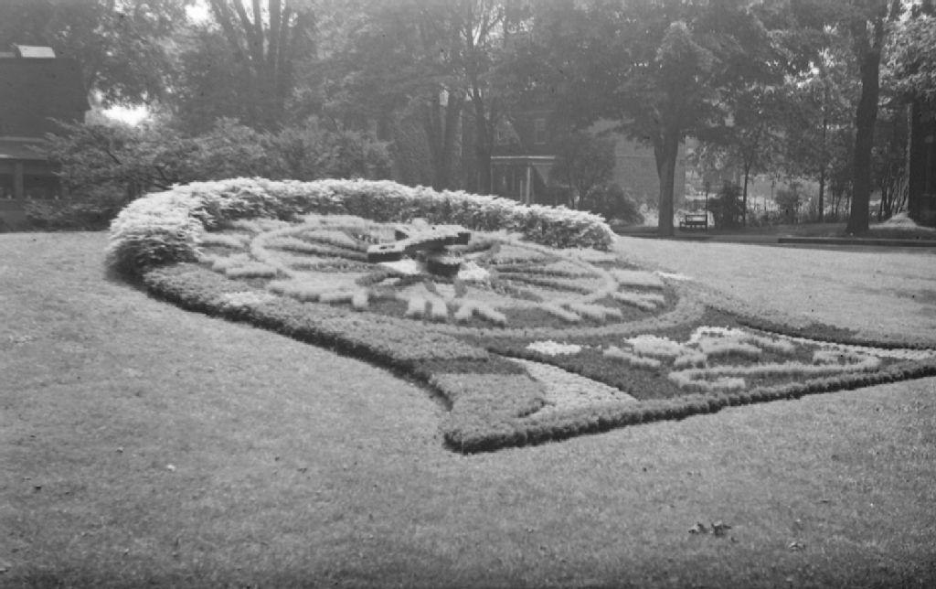View. Westmount Floral Clock, Juillet 1947, Archives nationales à Montréal, Fonds Conrad Poirier, (06M,P48,S1,P16022), Poirier, Conrad.