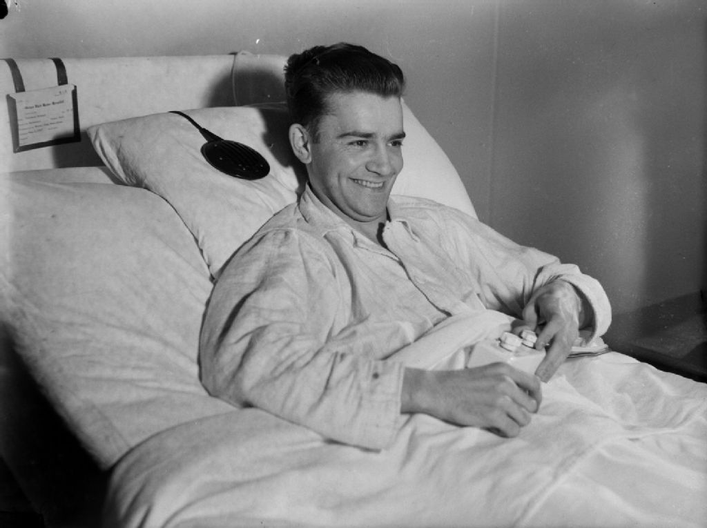 Un patient du Grace Dart Home Hospital, de la rue Sherbrooke Est à Montréal, fait tourner les boutons de la boîte de contrôle d'intensité du son de l'interphone