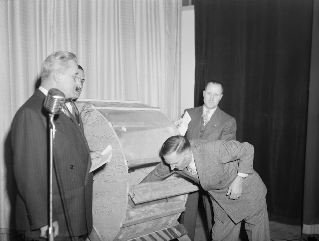 Un organisateur de la loterie de la Légion canadienne procède au tirage du billet gagnant