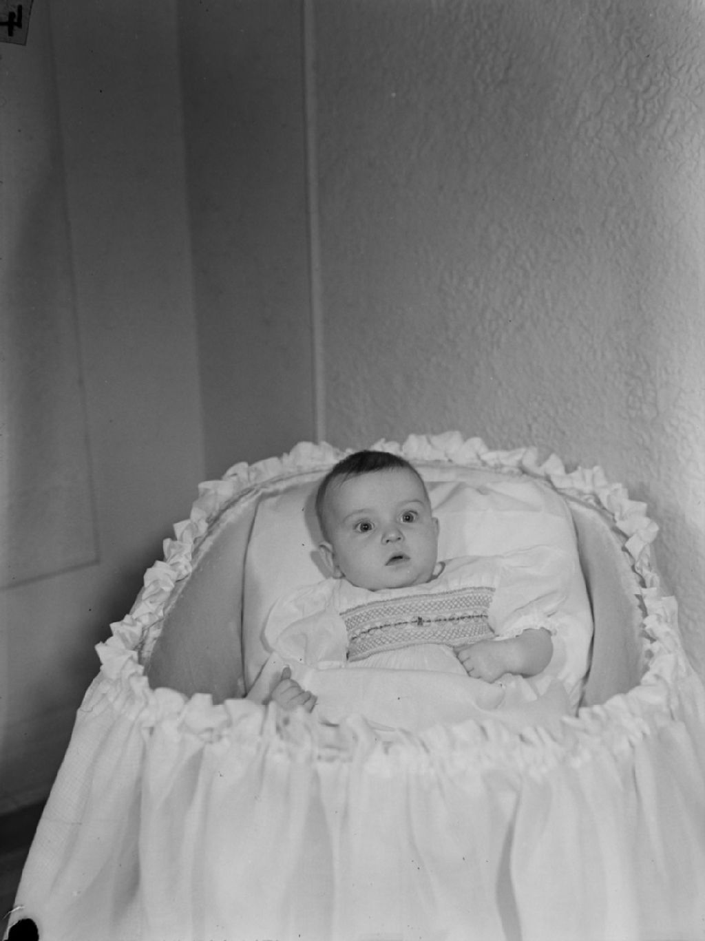 Nous voyons le bébé Hodge couché dans un moïse