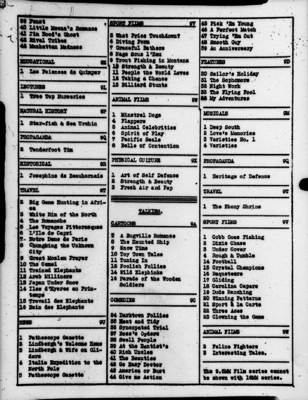 Copy. Film List, 1 mars 1949, Archives nationales à Montréal, Fonds Conrad Poirier, (06M,P48,S1,P17554), Poirier, Conrad.