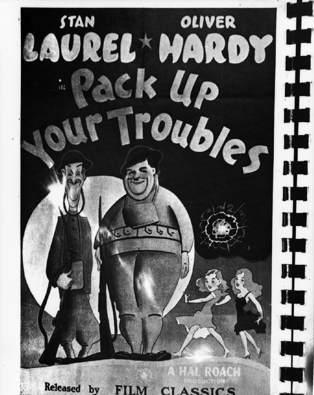 Nous voyons l'annonce publicitaire du film de Stan Laurel et Oliver Hardy «Pack Up Your Troubles»