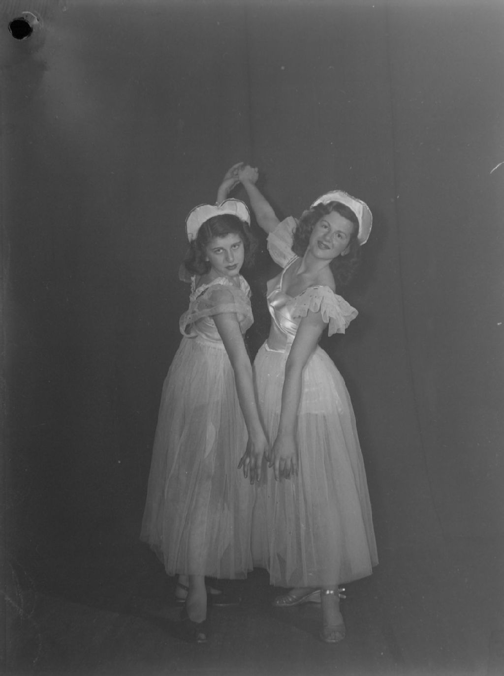 Florence Singer et Riva Weisbord, en robe longue, dansent