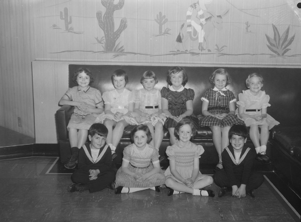 Un groupe de filles et deux garçons sont réunis pour une fête organisée chez les Jones. Du papier peint représentant des cactus dans un paysage de désert couvre le mur à l'arrière-plan